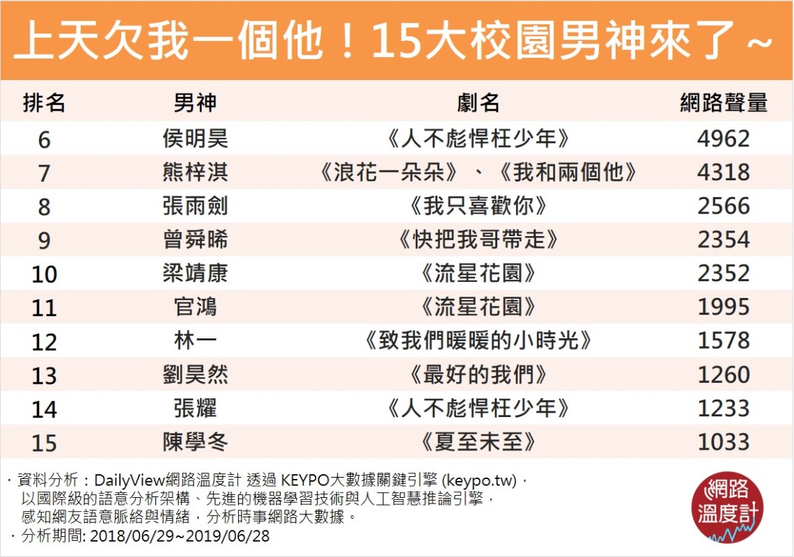 今天DailyView網路溫度計就要透過《KEYPO大數據關鍵引擎》調查,近3年內熱播後引起超高討論度的大陸校園劇男神,有冷酷、有霸氣、有軟萌小奶狗系列,喜歡哪一個快領回家!