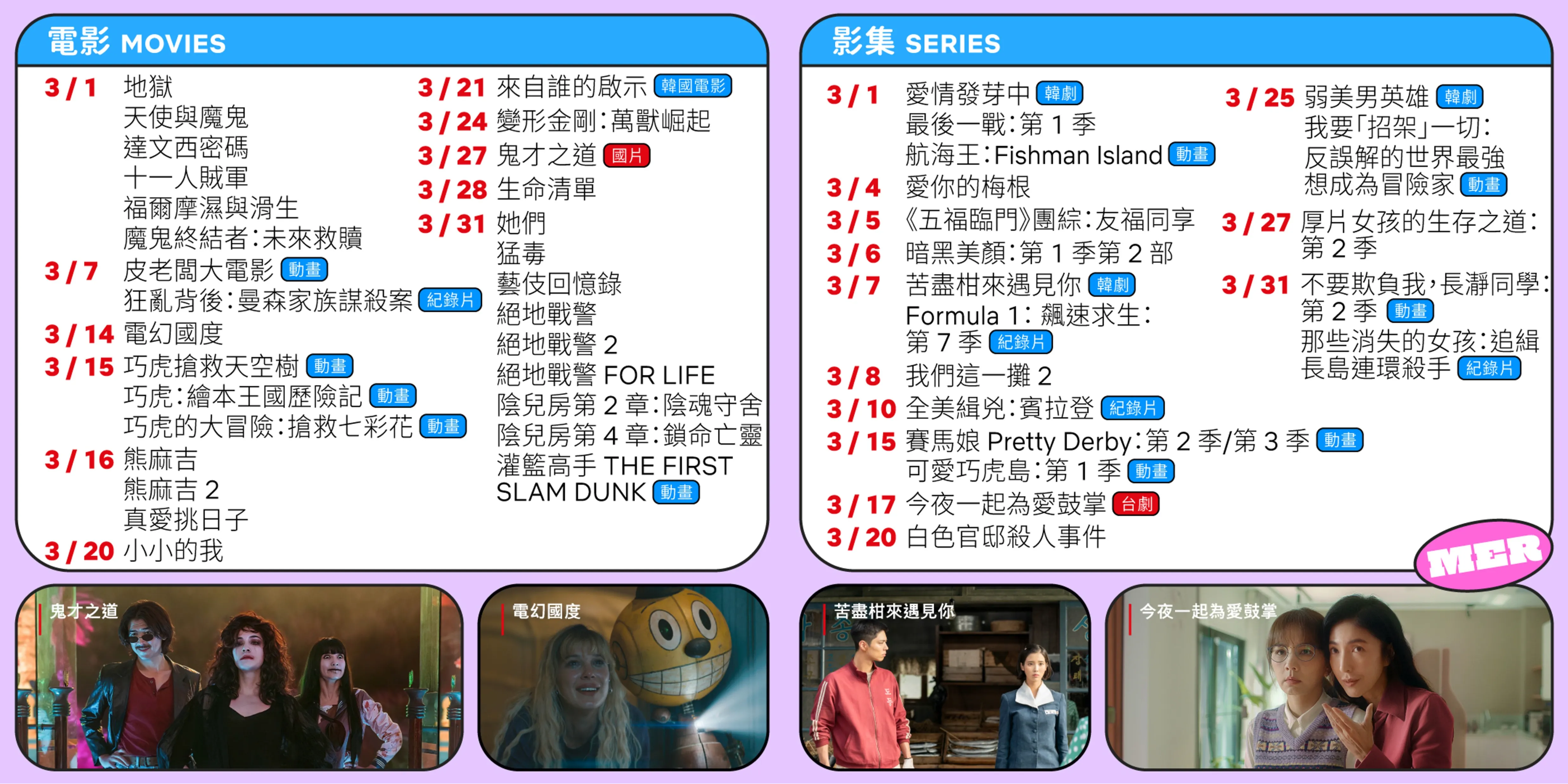 最新3月片單/Netflix、Disney+、Hami Video影集推薦!